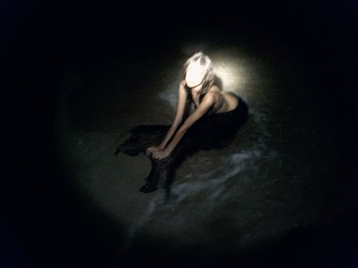 Her other arm reaches from beneath the waves and
